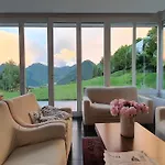 Der Innenraum ist mit einem Sofa möbliert und bietet zudem einen Ausblick auf die Berge. Gästen stehen auch ein Flachbildfernseher mit Satellitenkanälen zur Verfügung. Das Badezimmer ist mit einer Badewanne, einem Whirlpool und einer Dusche ausgestattet und verfügt auch über einen Haartrockner und Badelaken.